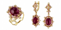 Контрастное сочетание корундов – красного, считающегося символом страстной и чувственной любви и прозрачных королевских, открывает неистовую красоту украшения.