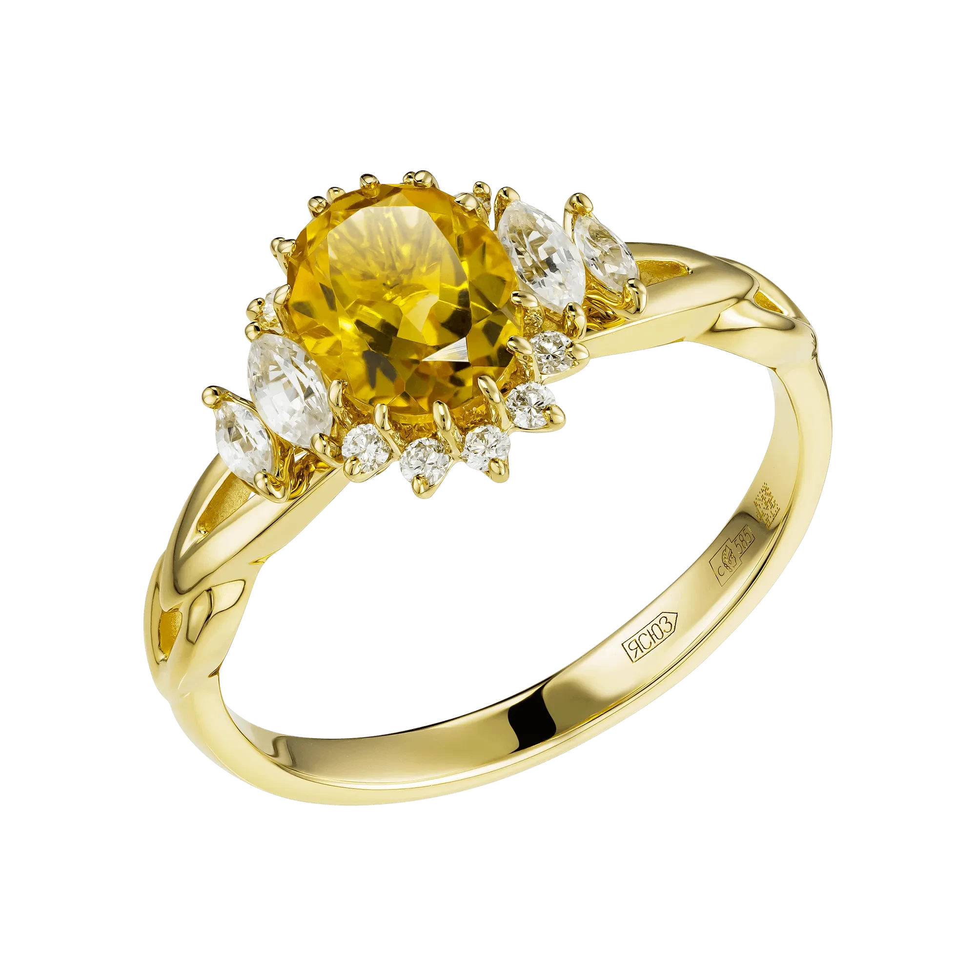 Цитрины удерживают свет внутри, создавая ощущение внутреннего свечения, которое не ослепляет, а притягивает. Белые сапфиры и бриллианты выстраиваются вокруг них как световые акценты — тонкие «аккорды», отражающие солнечный диск и усиливающие глубину цвета. Их сияние добавляет ритм и объём, превращая украшения в визуальную мелодию света.