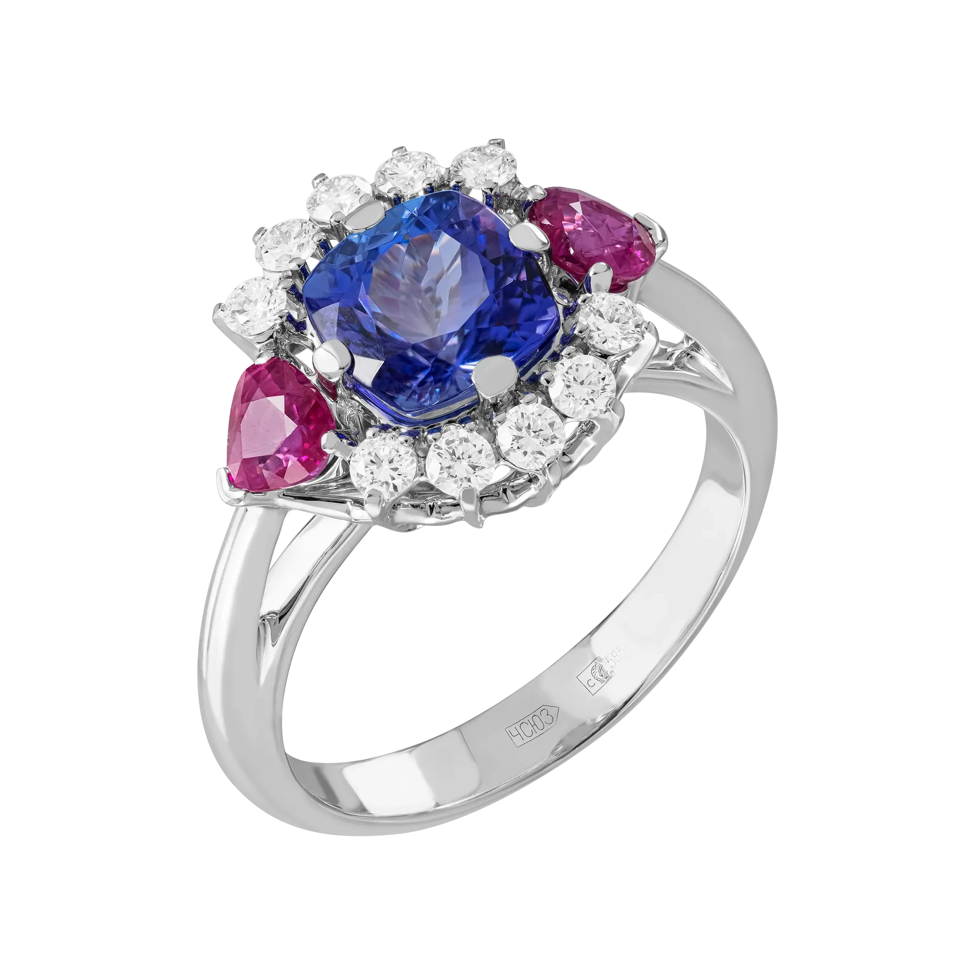 Подчеркивая его несравненную красоту и головокружительное величие, мастера Maxim Demidov сочинили элегантный ювелирный сет из белого золота, радующий глаз разноцветной палитрой. Во главу угла ювелиры поставили сразу три чистейших танзанита общим весом 4,60 карат, насыщенный синий оттенок которых идеально гармонирует с окружающими пламенными рубинами и тремя десятками сверкающих бриллиантов.
