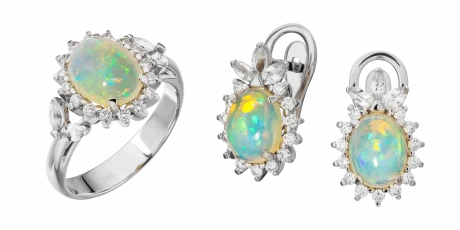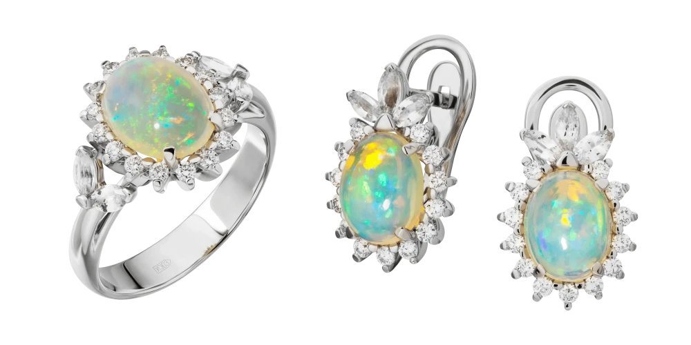 Россыпь бриллиантов и холодное сияние белого золота создают ореол чистоты и глубины, усиливая внутреннее свечение опалов. Гарнитур «Эхо импрессионизма» предназначен для женщины, которая ощущает красоту интуитивно – словно художник, воспринимающий мир через призму света и вдохновения.
