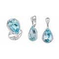 Гарнитур словно собрал в себе дыхание самого освежающего мгновения лета – того самого, когда жара вдруг отступает, позволяя прохладному воздуху коснуться кожи. Бразильские аквамарины общим весом 52,72 карат напоминают драгоценные капли, застывшие на грани света и воды. Их сияние несёт с собой ощущение свободы, прохлады и прозрачности, которое остаётся в памяти, как первое купание в знойный июльский день.