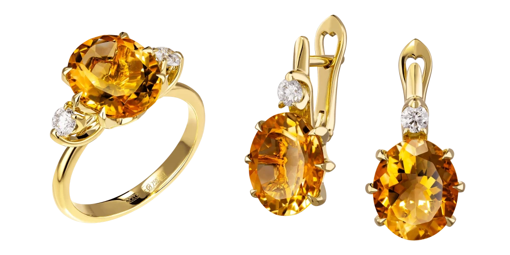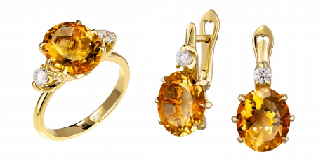 Удовлетворяя это желание обладать летним драгоценным аксессуаром, мастера Maxim Demidov сочинили утонченный гарнитур. Из желтого благородного металла ювелиры виртуозно исполнили элегантную оправу, инкрустировав ее кристально чистыми бриллиантами. Блеск прозрачных кристаллов разливается над золотыми, как милое сердцу солнце, цитринами. Мастерски закрепленные камни из Бразилии сияют красивыми желтыми переливами.