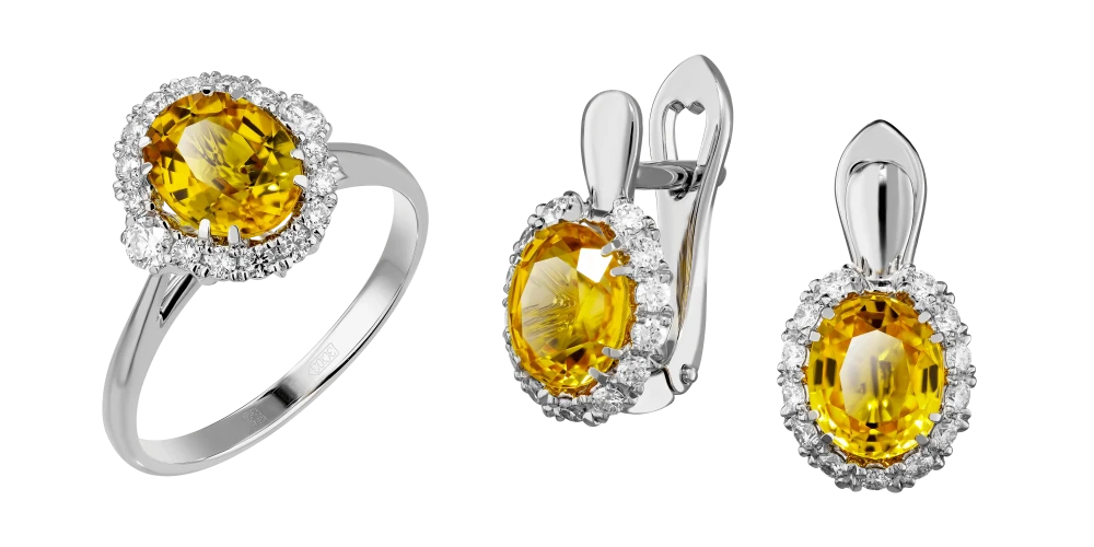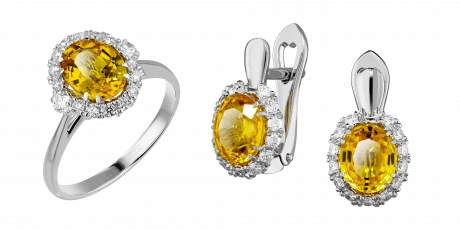 Серьги: Сапфир (Желтый) (2) 2,11 карат
