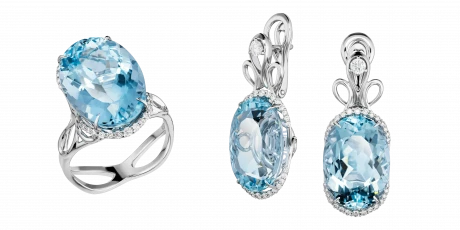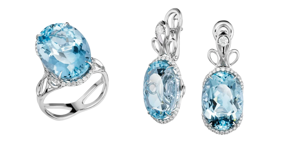 Белое золото оправы становится фоном тишины, в котором самоцветы звучат особенно чисто. Этот гарнитур рождает состояние ясности, спокойствия и внутреннего света — когда воздух касается души, а ощущение остаётся навсегда.