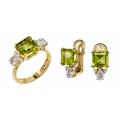 Подчеркивая эту натуральную особенность минералов из Китая, ювелиры обрамили их кристально чистыми бриллиантами и сапфирами. Драгоценные камни первого порядка как будто приглашают в полной мере оценить нетривиальную привлекательность хризолитов, готовых полностью «служить» владелице для достижения успехов как в личной жизни, так и на работе.
