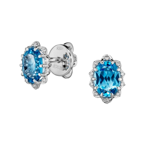 Каждый топаз окружён тонким ореолом из сверкающих бриллиантов, создающих впечатление световой короны. Благодаря этому контрасту усиливается глубина цвета, и самоцветы раскрываются во всей своей природной красоте. Белое золото оправы подчёркивает изысканную геометрию украшений и становится фоном для чистоты света.