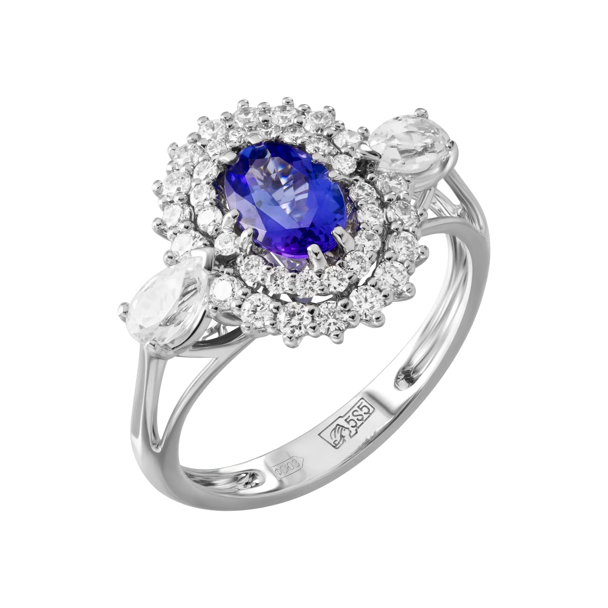 Бриллианты символично расположили в замкнутые круги бесконечного очарования, добавив воздушности имитирующими крылья ангела сапфирами, а в центр поместили редкой красоты танзанит. Минерал весом 0,64 карат, привезенный с плато Мерелани, что в предгорье Килиманджаро, завораживает игрой оттенков синего – от насыщенно сапфирового до аметисто-фиолетового, благородным блеском и аристократичной прозрачностью.