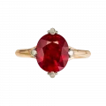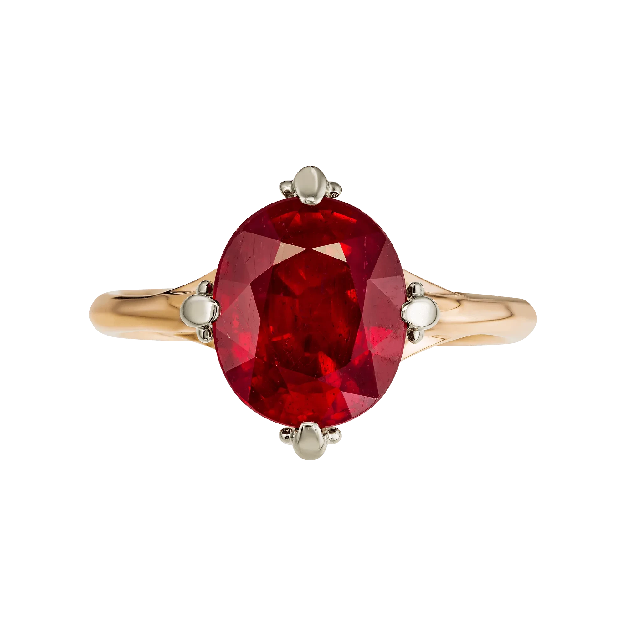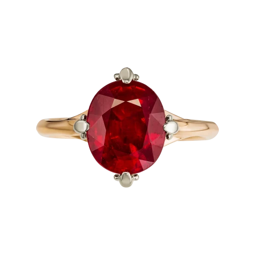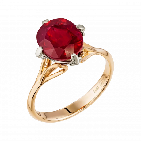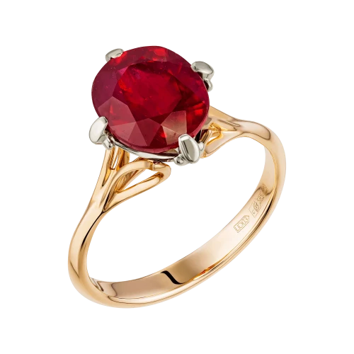 Шинка из красного золота становится продолжением этой идеи — её тёплый оттенок поддерживает цвет рубина, создавая единое эмоциональное поле. Контраст белого и красного металла подчёркивает центральный акцент, усиливая выразительность композиции.