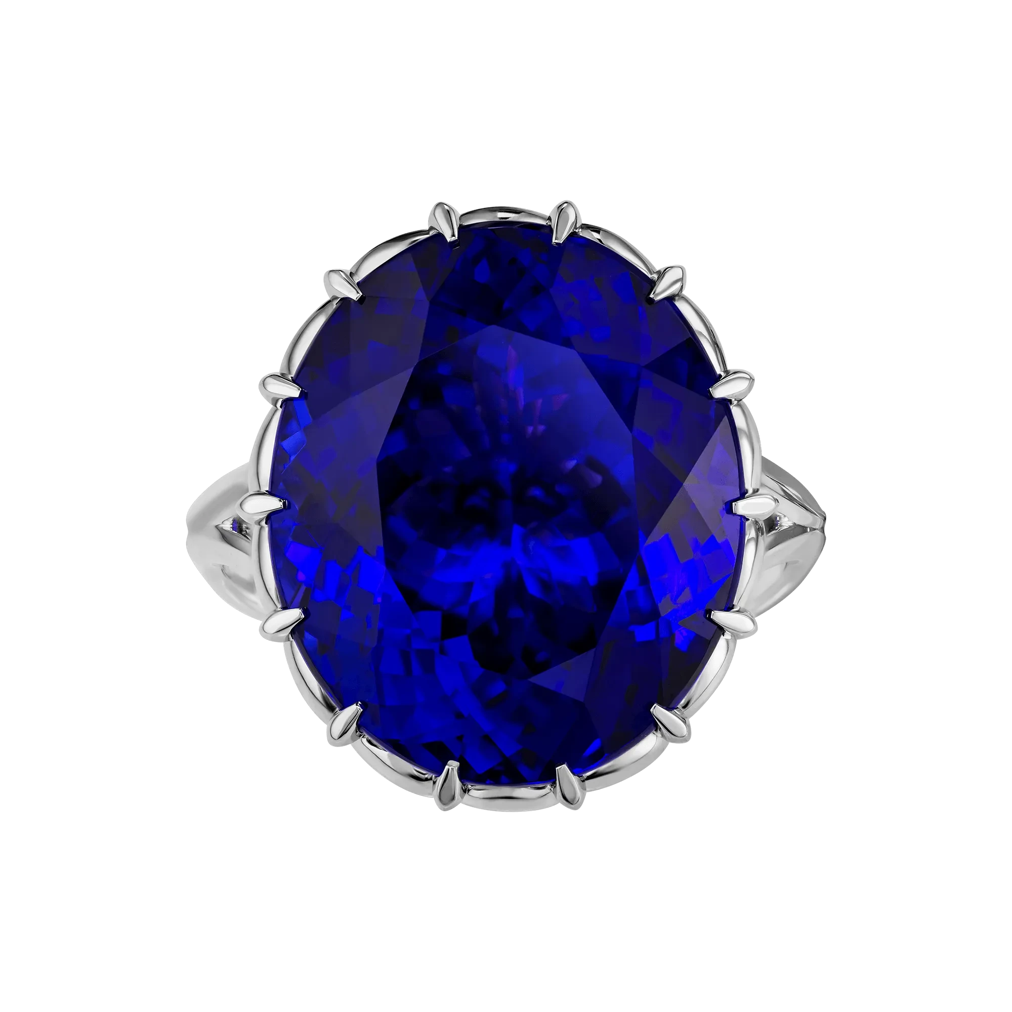 В центре украшения расположен редкий танзанит весом 17,01 карата, природный камень, который добывается лишь в одном месте на Земле – у подножия Килиманджаро в Танзании. Его уникальный сине-фиолетовый оттенок – результат природного соединения ванадия и глубоких геологических процессов, которые невозможно воспроизвести искусственно. Танзаниты крупного размера и насыщенного цвета встречаются крайне редко, что делает каждый из них настоящим коллекционным сокровищем.