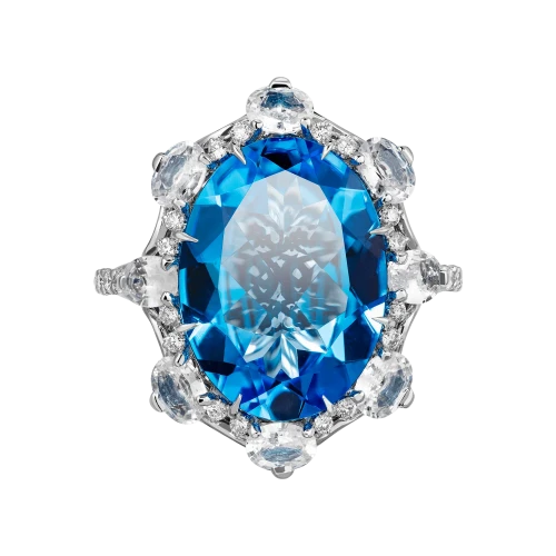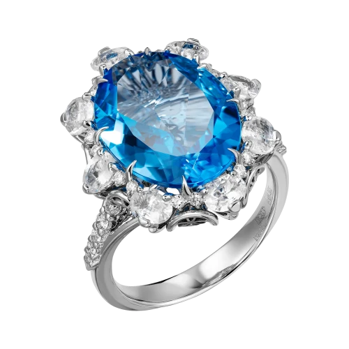 Символом чистоты пляжей испанского городка, практически каждый из которых отмечен голубым флагом, стал пленительный топаз весом более восьми карат, особенная лазурь которого имеет специальное название Super Swiss. Этот оттенок – визитная карточка элитного самоцвета, чьи высочайшие характеристики подтверждает бриллиантово-сапфировое окружение.