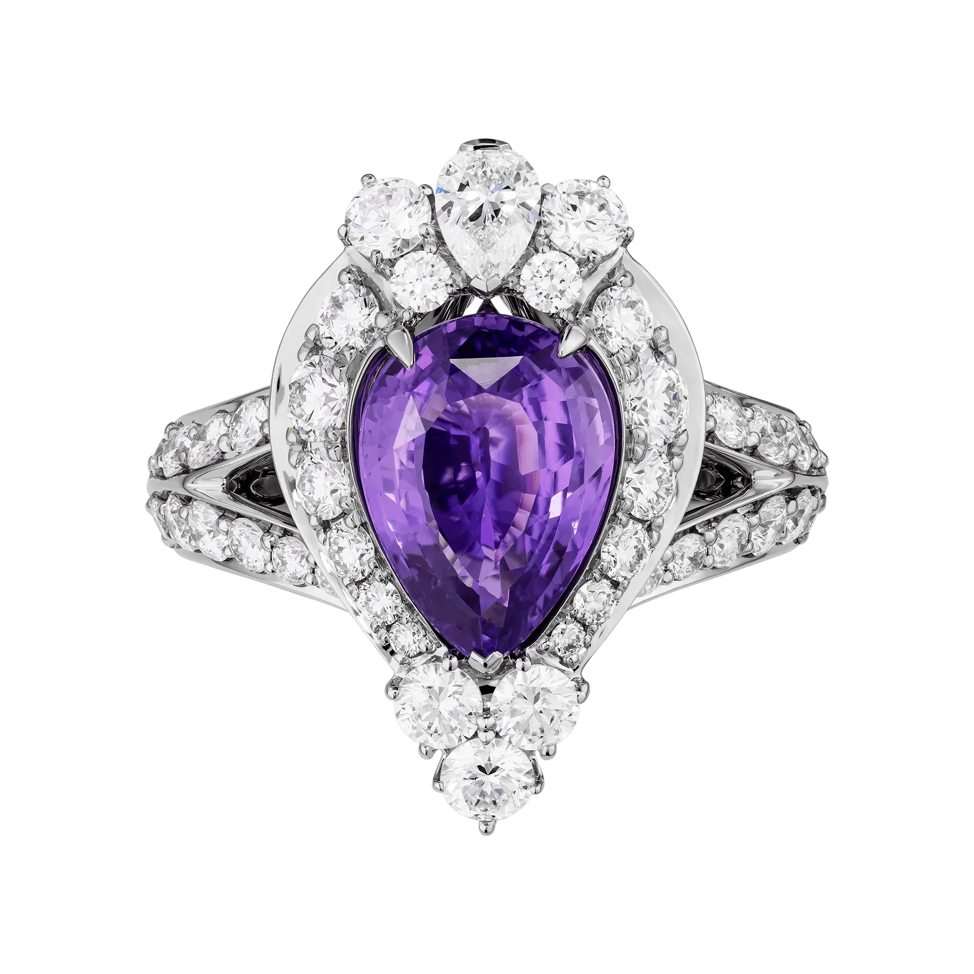 Поэтические строки рождаются сами собой при взгляде на кольцо, в котором драгоценный нежно-сиреневый сапфир словно улавливает дыхание раннего утра. В его оттенке – хрупкая граница между ночью и днем, момент пробуждения, когда воздух напоён тишиной и всё вокруг замирает в ожидании первого луча. Самоцвет весом 3,0 карат излучает мягкий, погружённый в себя свет, не требующий акцентов – он звучит изнутри.