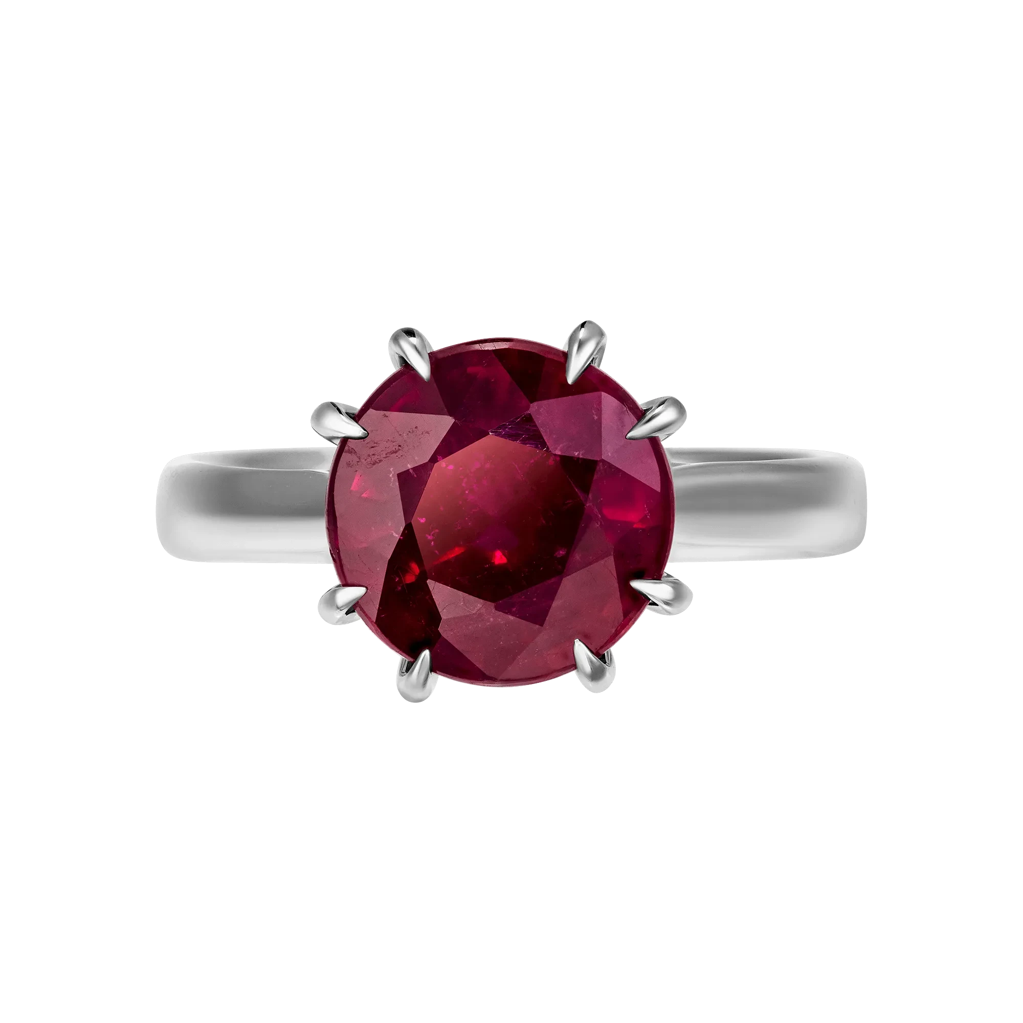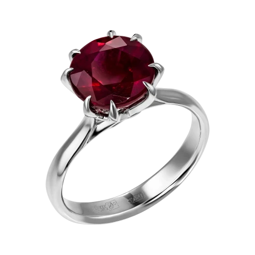 Пылающий корунд выразительно смотрится в легком закрепе. Эта почти невидимая связь основы и чистейшего драгоценного камня весом 4,06 карат открывает все пленительное совершенство виртуозно ограненного рубина, способного подчеркнуть энергию и темперамент своей владелицы.