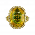 В сердце – редкий сапфир из Шри-Ланки весом 8,15 карата. Его оттенок невозможно назвать одним словом: он переливается от прозрачного золота до тёплого янтаря с едва уловимыми зелёными искрами. Безупречная чистота самоцвета позволяет рассмотреть внутренний рисунок – движение света, которое раскрывается в каждой грани, создавая ощущение глубины и текучести.