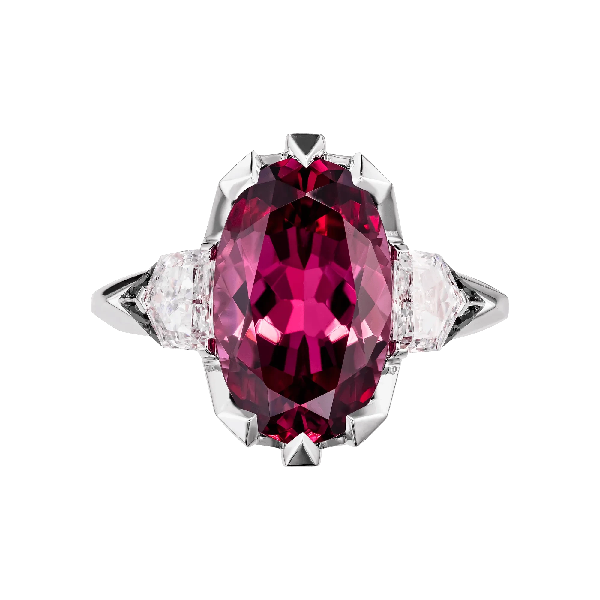 В ювелирном искусстве истинные сокровища – это не те, что сияют громко, а те, что звучат тихо и тонко, трогая глубинные струны души. В этом кольце красота выражена через розовую шпинель Махенге из Танзании весом 5,05 карат, окружённую бриллиантами фантазийной огранки, дополненными россыпью чёрных бриллиантов – композиция, где каждая грань и отблеск несут внутренний смысл.