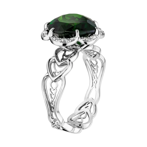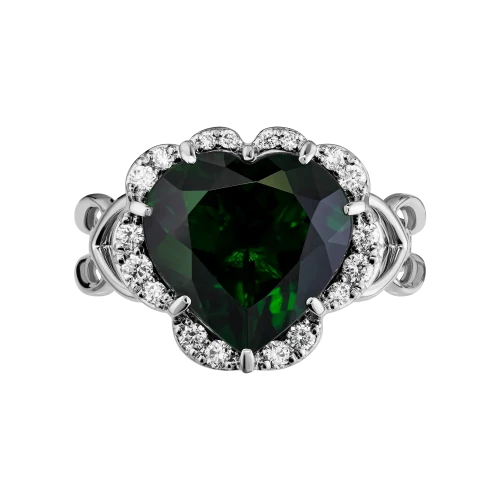 Кольца из белого золота с хромтурмалином и бриллиантами