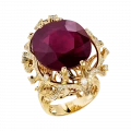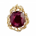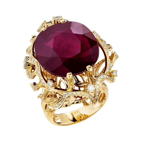 Кольцо «Лабиринты судьбы» подобно древнему амулету, в котором зашифрована история чувств, решений и неожиданных поворотов. Ажурная оправа из жёлтого золота вырисовывает сложный рельеф, напоминающий лабиринт – тот самый, где каждый шаг приближает к сокровищу. В самом центре мерцает крупный рубин из Мозамбика – густой, насыщенный, словно капля редкого вина, заключённая в благородную чашу.