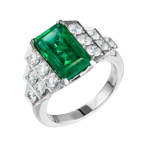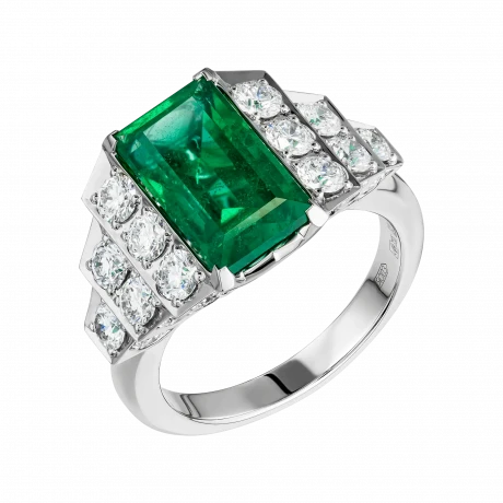 Изумруд с древности считался камнем избранных. Ему приписывали способность хранить и усиливать чувства, оберегать любовь и вести своего владельца к высшему предназначению. Центральный камень кольца — уральский изумруд весом 3,82 карата, добытый на Малышевском месторождении, месте, чьё имя вписано в историю мировой ювелирной культуры. Именно здесь, на Урале, изумруды ценились наравне с лучшими колумбийскими образцами и нередко предназначались для императорских коллекций.