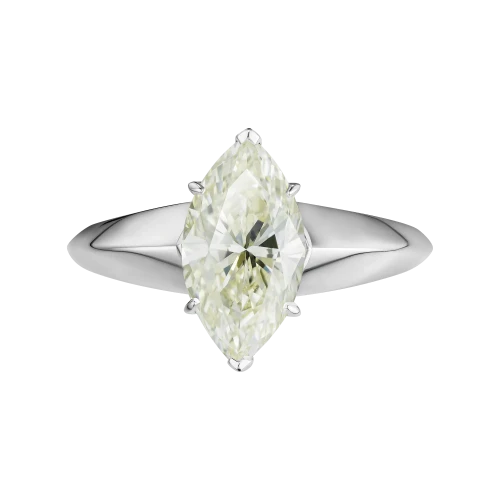 В центре композиции — бриллиант весом 2,20 карата, выполненный в огранке «маркиз». Такая форма подчёркивает природную прозрачность драгоценного камня, усиливает его сияние и визуально вытягивает силуэт, создавая ощущение лёгкости и движения. Международный сертификат GIA подтверждает подлинность самоцвета и его характеристики, делая украшение коллекционным по своей природе.