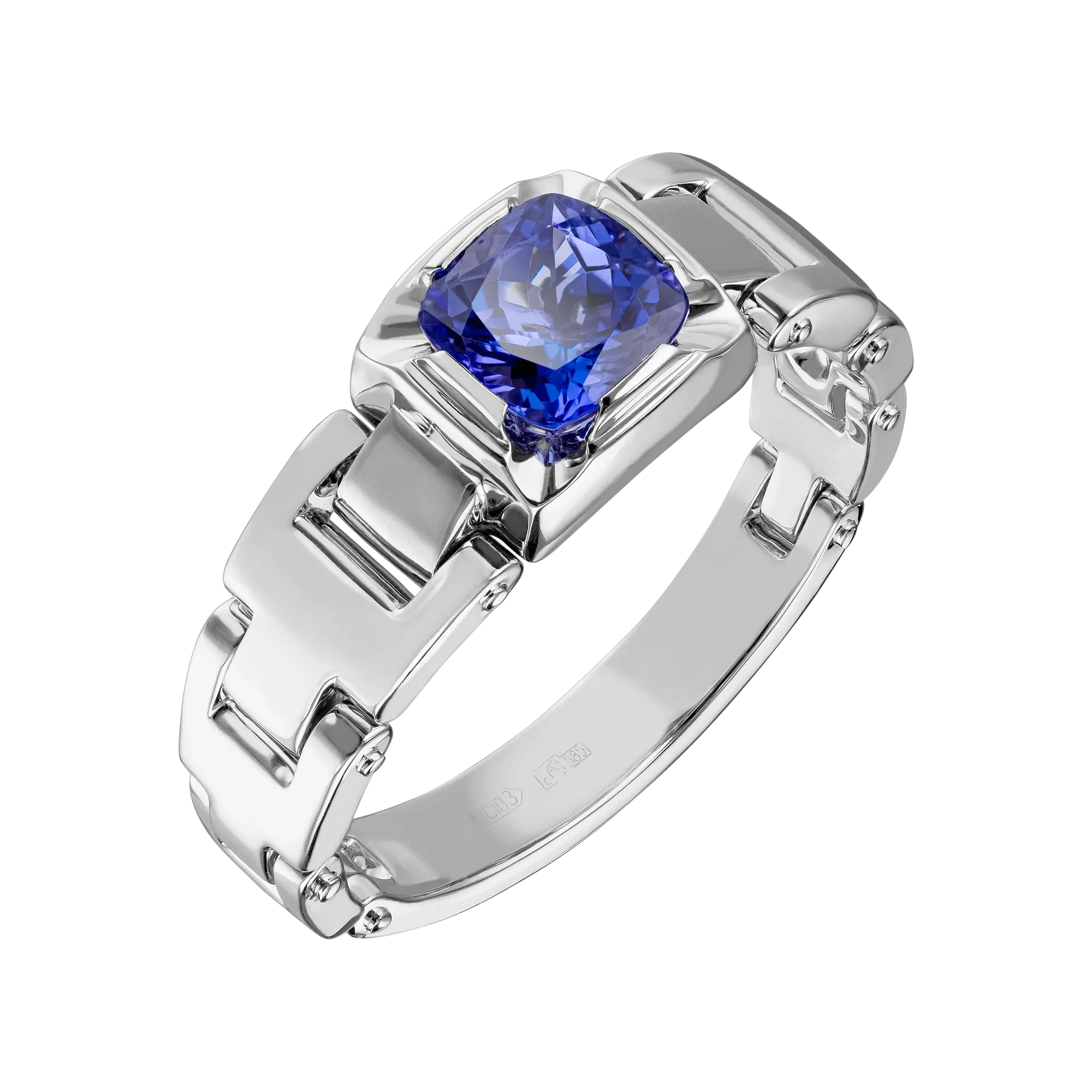 Квинтэссенцией украшения стал один из удивительнейших на земле драгоценных камней, встречающийся в естественной природе реже благородных бриллиантов – танзанит. Уникальным свойством минерала, отличающим его от других кристаллов и сравнимым со сказочной магией, которая проникла в наш реальный мир, является возможность менять в своей глубине оттенки синего, переливаясь, словно шатер небес утром, днем и вечером.