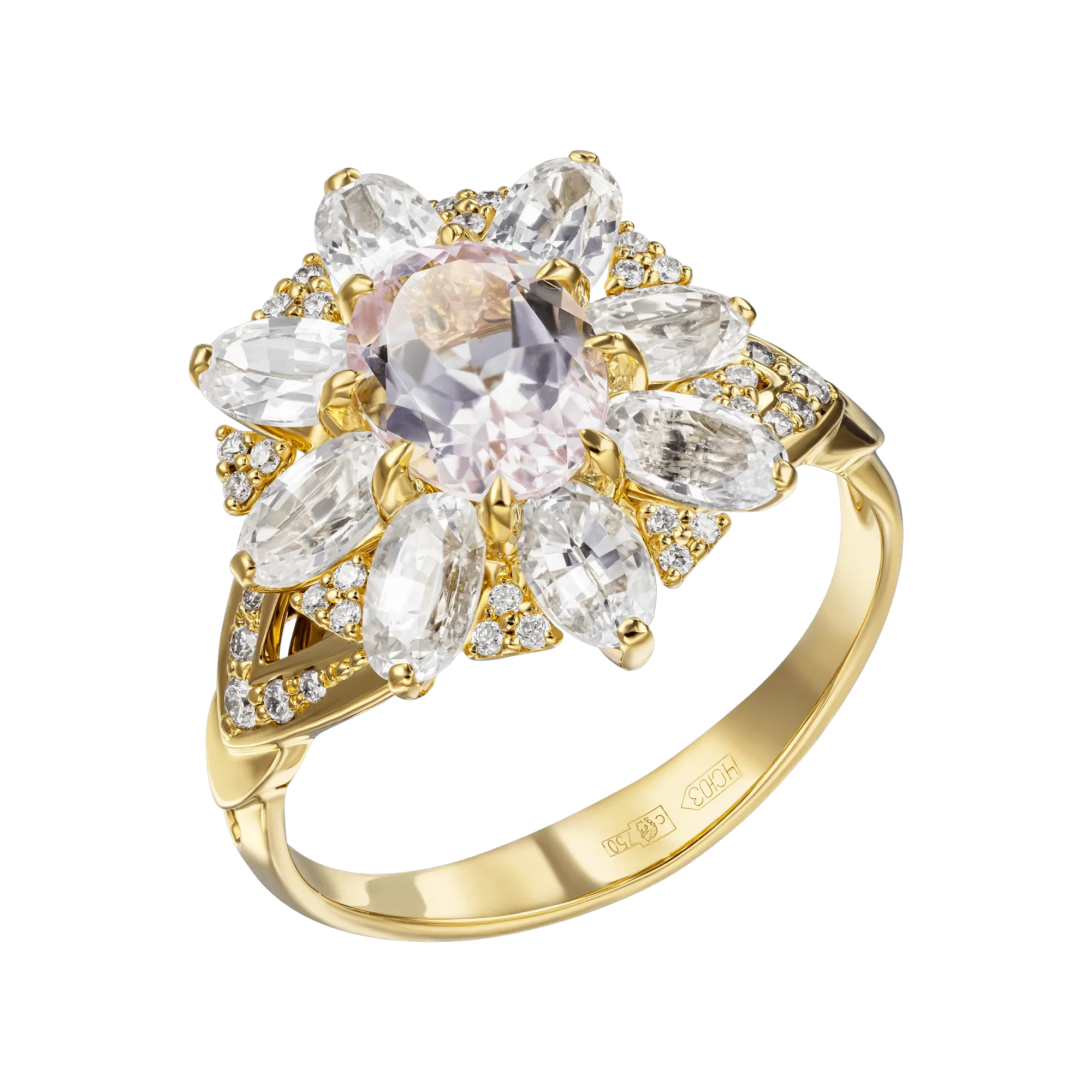 Пастельный оттенок очень ценного драгоценного камня – морганита, символизирует хрупкость и нежность, но при этом подчеркивает эмоциональность характера. Поэтому кольцо «Моллис», в центре которого сияет безупречный, утонченно розовый минерал из Бразилии, станет идеальным аксессуаром для дамы, которая хочет продемонстрировать все грани женственности в своем повседневном или вечернем образе.