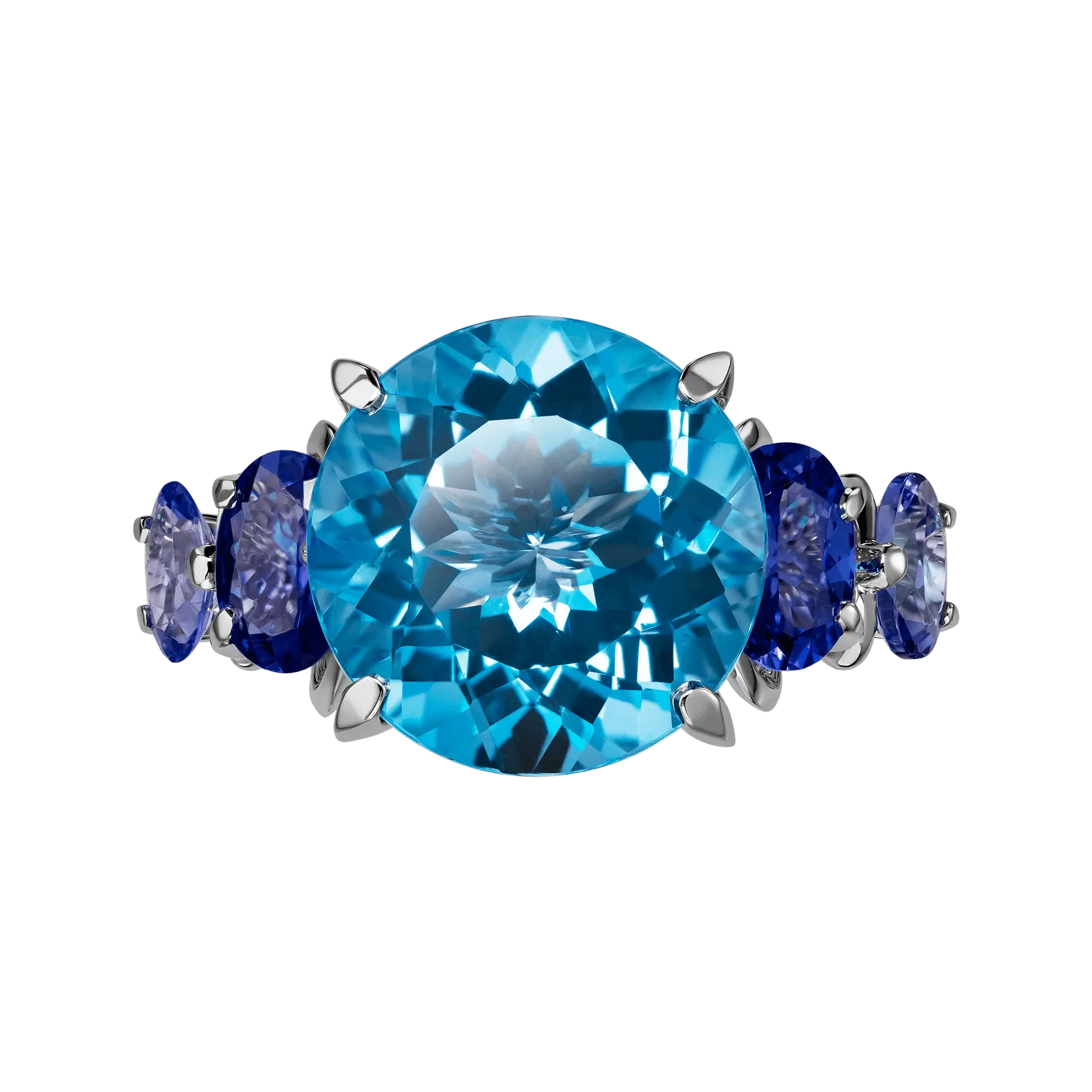 В центре этого утончённого украшения гордо возвышается голубой топаз, искренне заигрывающий с бликами света, что пробиваются сквозь утреннюю зарю. Он унесёт вас в путешествие к истокам бразильских рек с их кристально чистыми волнами, символизируя молодость и бесконечный потенциал, заложенный в каждый новый день. Воздушную архитектуру оправы обрамляют, помимо великолепного топаза, мистические танзаниты, их свет и тень создают симфонию утонченности в каждом движении украшения.