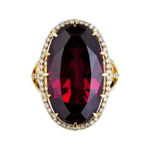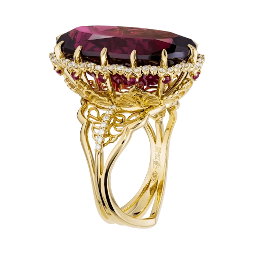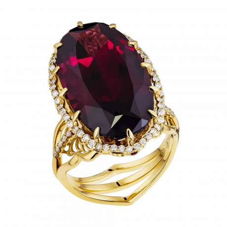 Кольца из желтого золота с родолитом