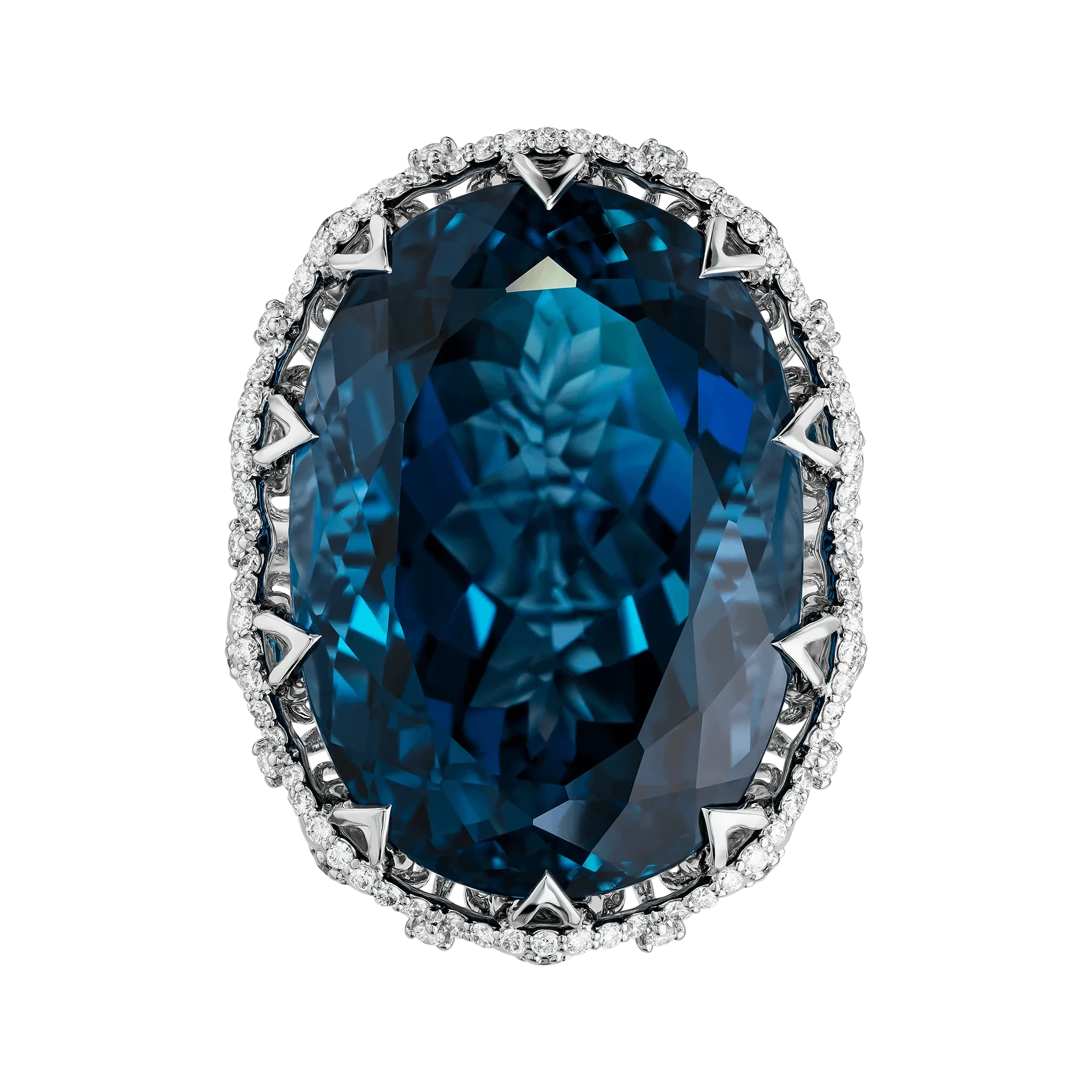 Ювелиры Maxim Demidov создали украшение, вдохновлённое мгновением, когда сумерки превращают свет в тайну. Крупный топаз London Blue весом 45,19 карата раскрывается как окно в ночной город: его оттенок сочетает прохладу индиго, прозрачную глубину и редкое внутреннее свечение, меняющееся при каждом движении.