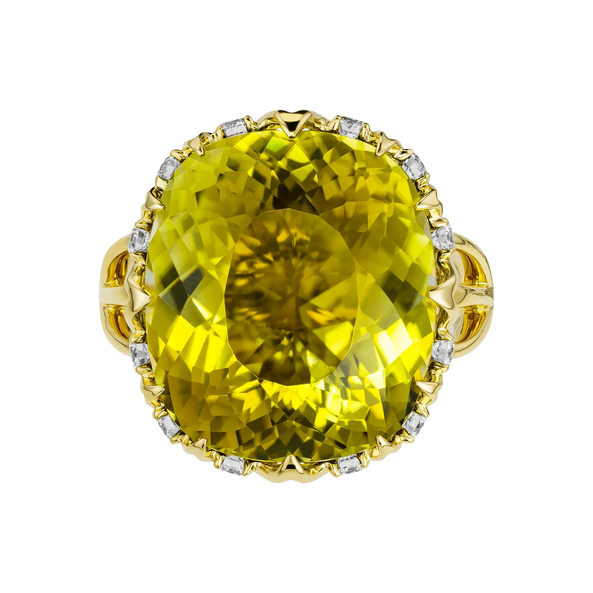Украшение «Обручение со светом» рождается в тот самый момент, когда взгляд встречается с канареечным турмалином и сразу понимает: перед ним не просто драгоценный камень, а живое сияние, обретшее форму. Самоцвет из Конго весом 18,30 карата обладает редким оттенком — насыщенным, тёплым, почти солнечным, где жёлтый звучит глубоко и многослойно, без резкости, словно наполненный внутренним светом.