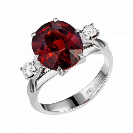 Главную роль они отдали спессартину – редкой разновидности граната, в которой цвет будто горит изнутри. Его огненно-красный оттенок напоминает живое пламя: тёплое, смелое, наполненное жизнью. Самоцвет не просто красив – он словно дышит, откликаясь на настроение своей избранницы.
