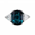 В центре композиции возвышается редчайший индиголит весом 6,45 карата, добытый в Афганистане. Его цвет – глубокий, как океан в полночь, и при этом прозрачно-чистый, словно взгляд в вечность. Оттенок индигового синего – один из самых редких среди турмалинов, ценимый коллекционерами за благородную глубину и уникальную оптическую живость.