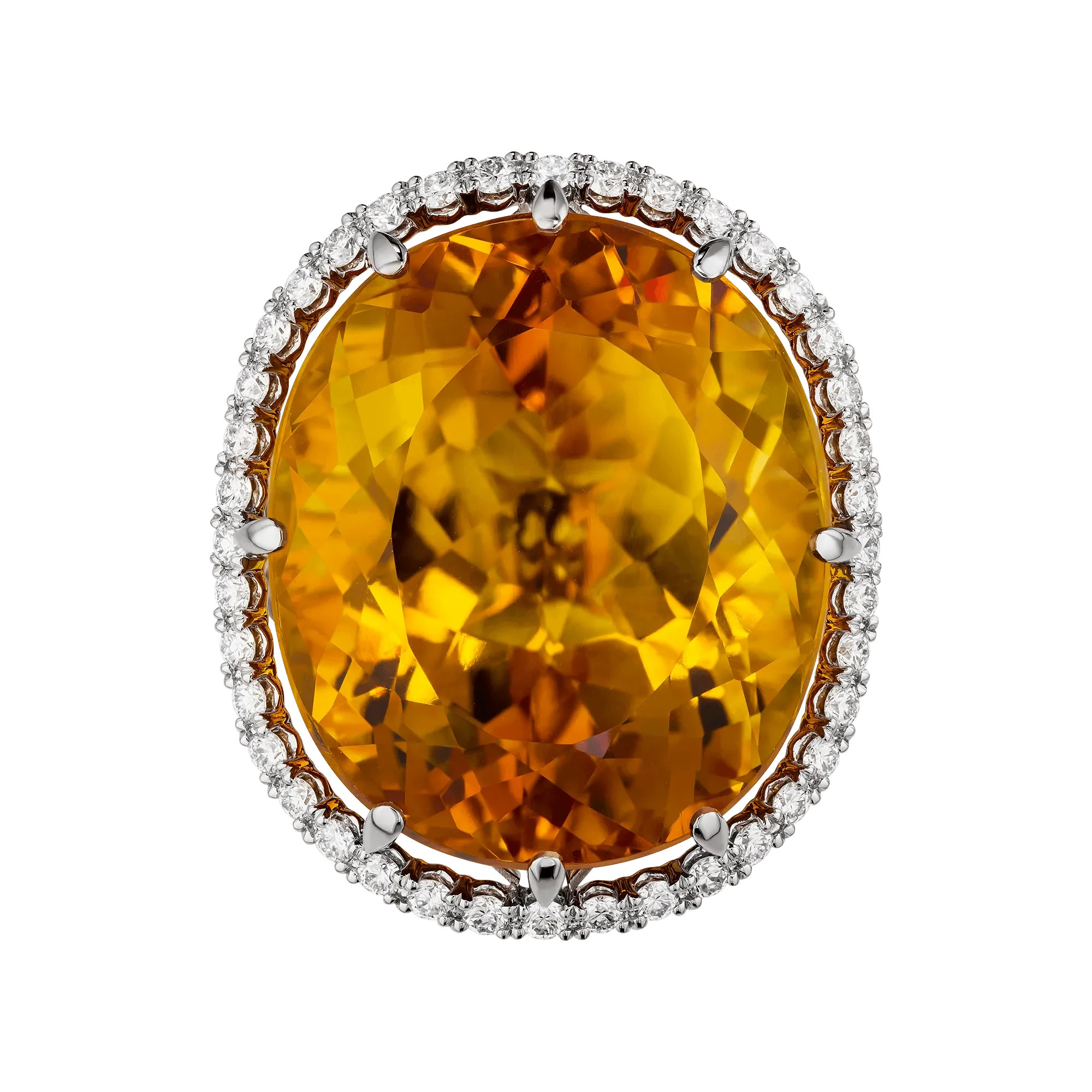 Белое золото оправы образует изысканное кружево, держащее природный камень в легкой невесомости. Россыпь бриллиантов усиливает сияние цитрина, превращая кольцо в поэтический символ света, который всегда остаётся с тем, кто носит это украшение.