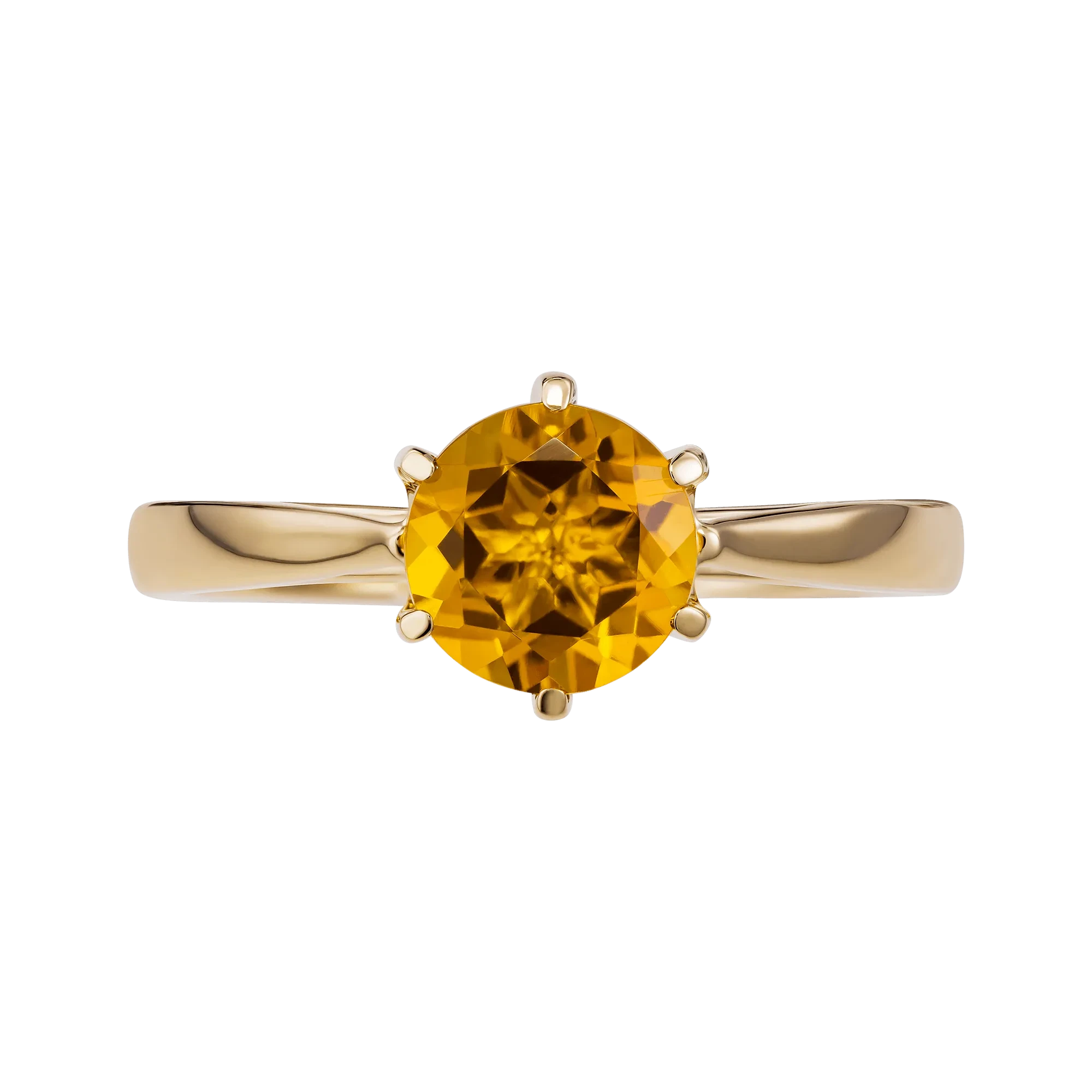 Жёлтое золото оправы усиливает природное тепло цитрина и придаёт украшению характер утончённой классики. Кольцо идеально подойдёт женщине, которая ценит красоту простых линий и силу внутреннего света – тому самому, что отражается во взгляде и поступках.