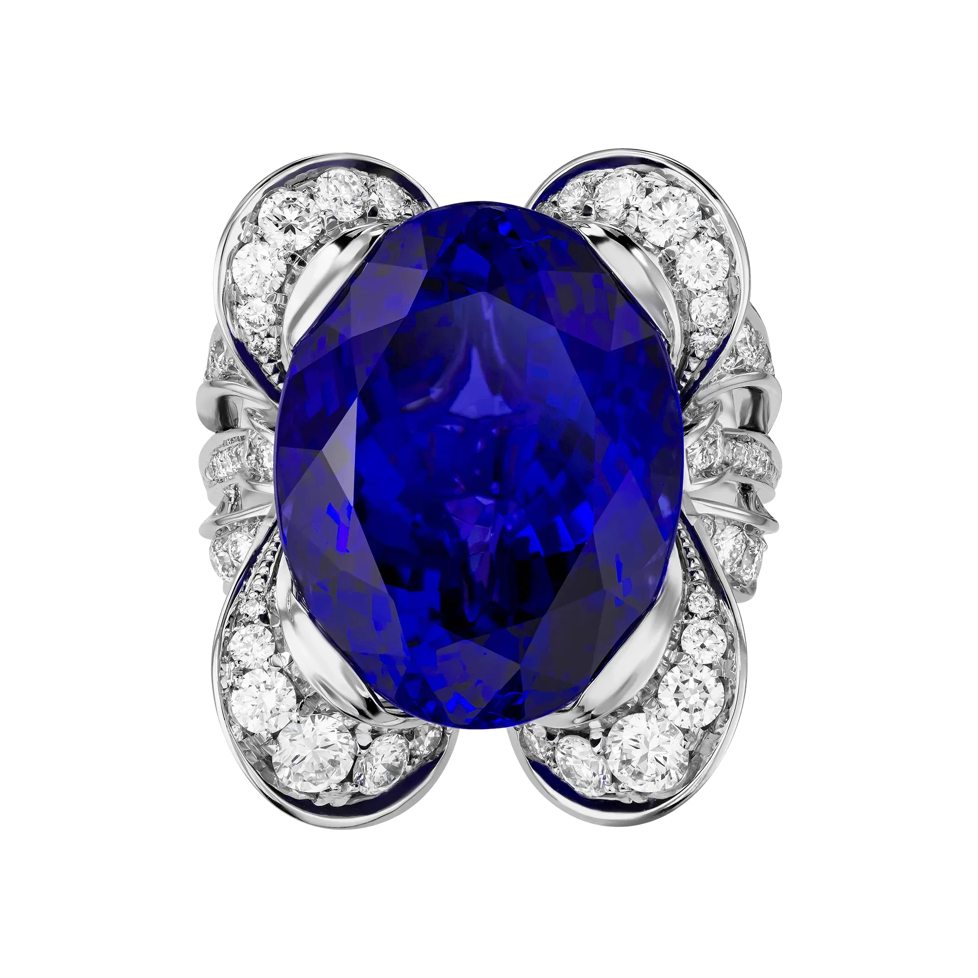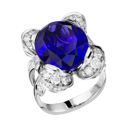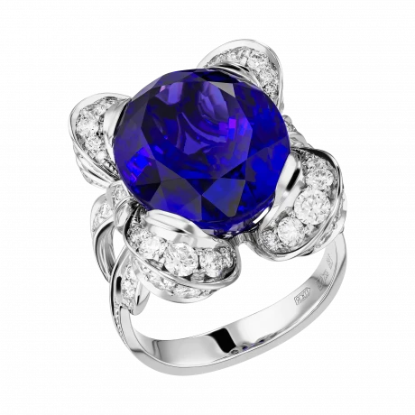 В кольце «Парижский акцент» оживает поэзия вечернего Парижа – города, где мягкий свет фонарей смешивается с багровыми отблесками заката и тает в глубине синих сумерек. Центральный танзанит весом 14,35 карата словно вобрал в себя эту гармонию: его глубокие оттенки переливаются от густого индиго до фиолетовых искр, напоминая о неуловимой магии французских ночей.