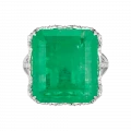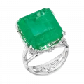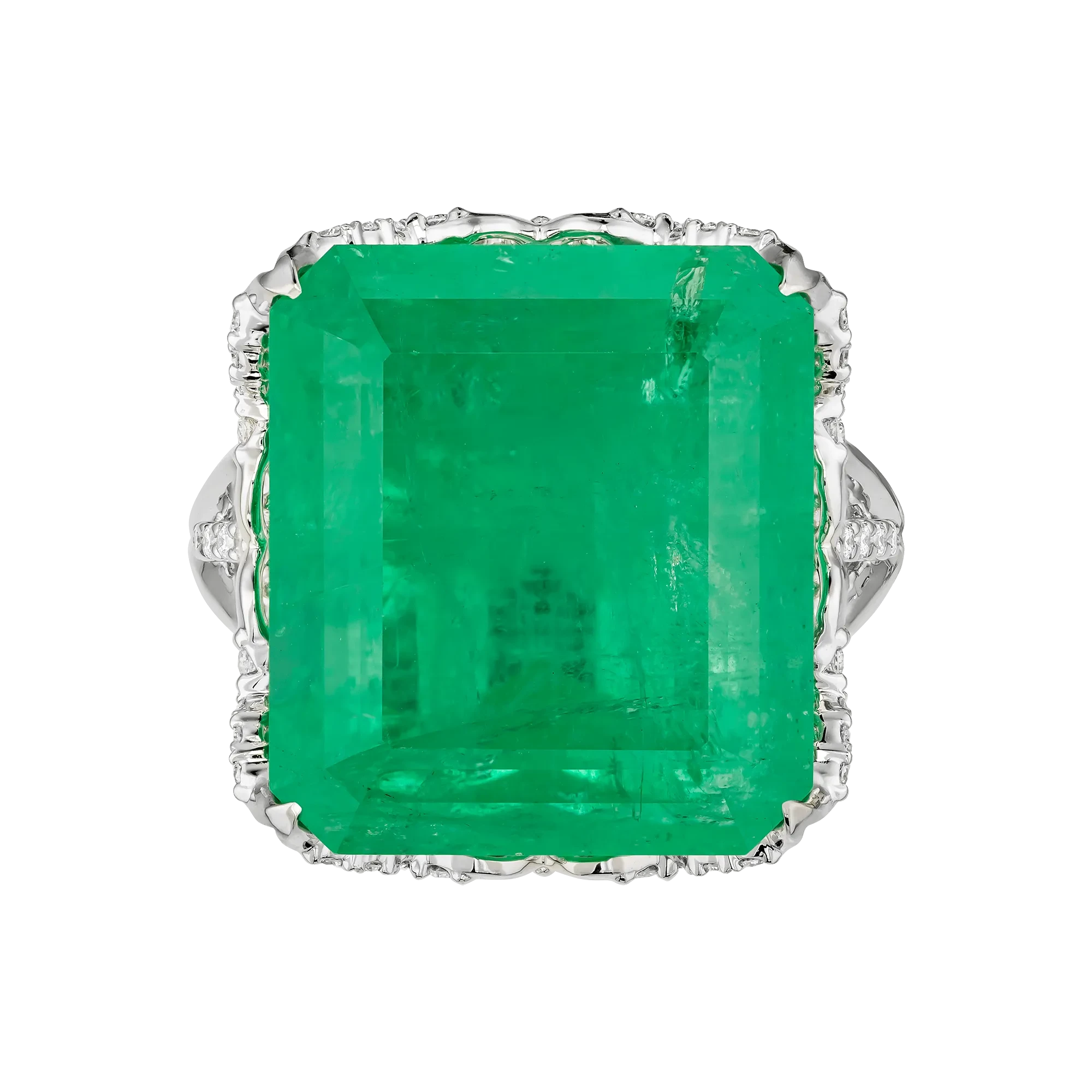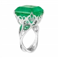 Оправа из белого золота выстроена сдержанно и точно, позволяя изумруду доминировать в композиции. Бриллианты формируют плотную световую среду, усиливая насыщенность цвета и подчёркивая масштаб центрального элемента. Украшение воспринимается как концентрированное выражение природной силы и редкости, где цвет становится главным смыслом.