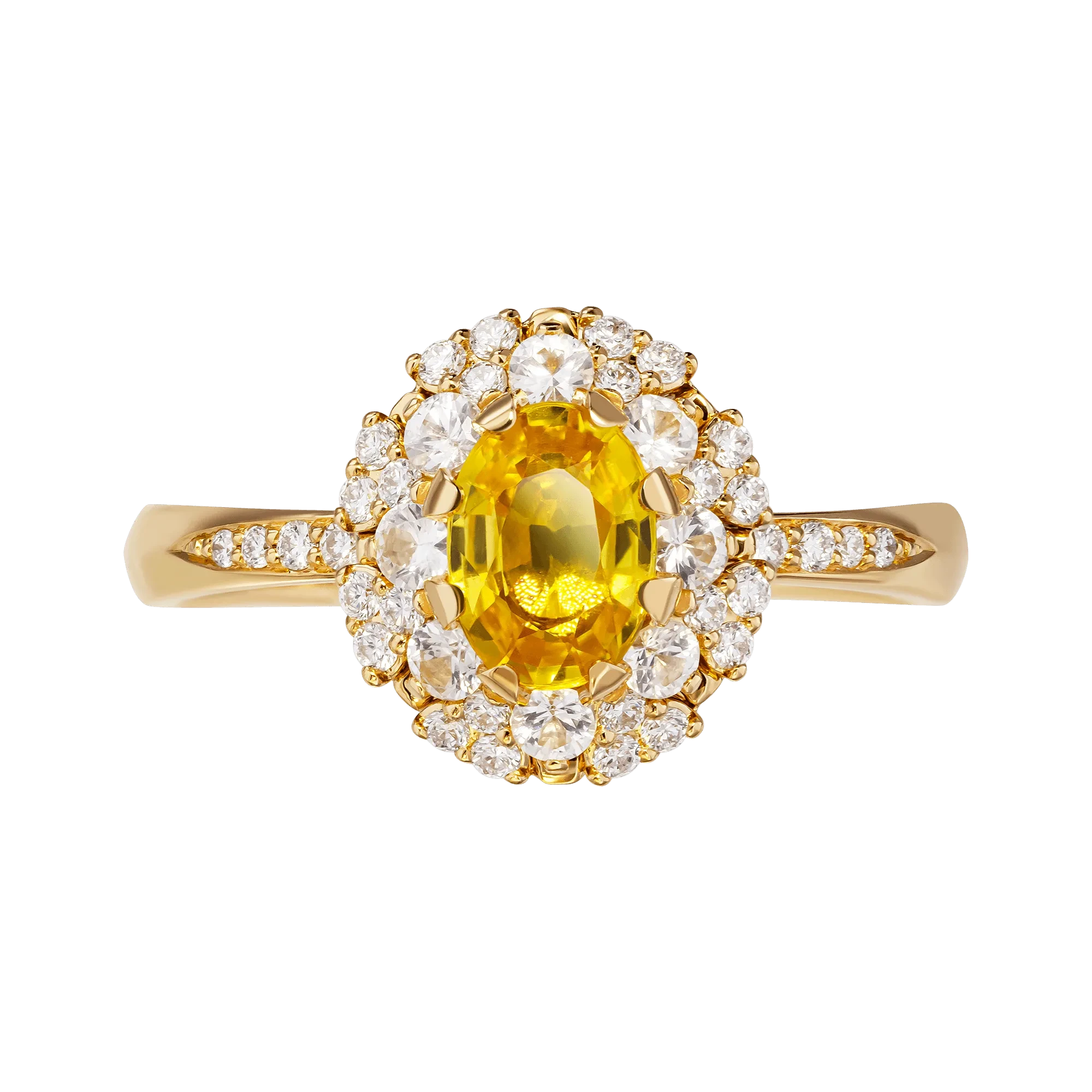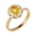 Мастера Maxim Demidov сочинили авторское кольцо исключительно из кристаллов первого порядка. Украшение будто соткано из солнечных лучей, настолько оно золотое и теплое по сиянию. В центре глянцевой оправы из желтого благородного металла красуется великолепный медовый сапфир весом в один карат. К ювелирам он попал прямиком с «самоцветного острова» – Шри-Ланки. Цветную красочность кульминационного кристалла подчеркивают безупречно прозрачные корунды и бриллианты.