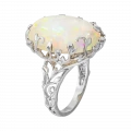 Разбрызгивая вокруг себя радужные переливы, которые, то сменяют друг друга, то вспыхивают все разом, создавая реалистичную иллюзию звездного неба, поддерживаемую, к тому же, сиянием многочисленных прозрачных бриллиантов, головокружительный опал огранки «кабошон» весом 12,21 карата пленяет мистическим очарованием.