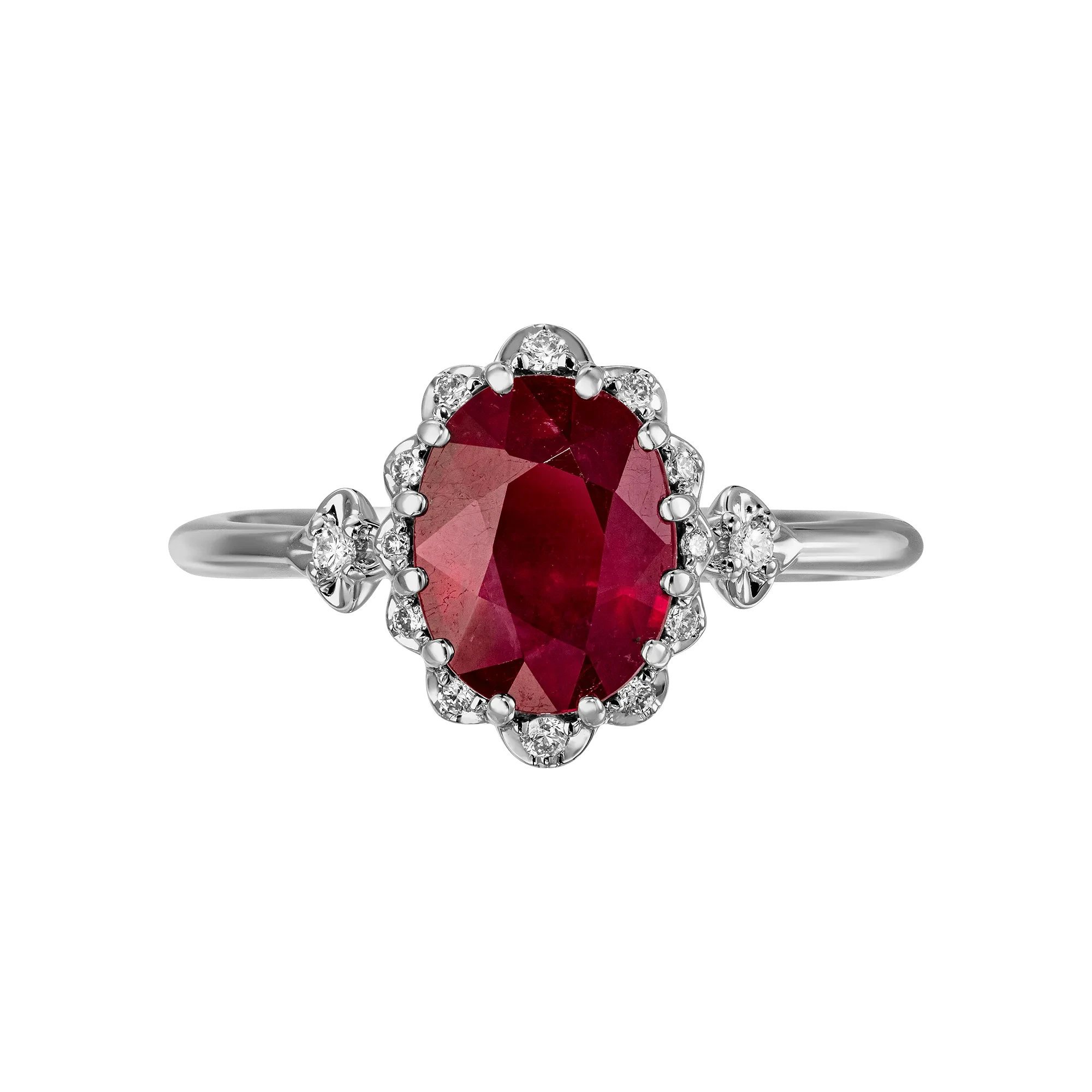 Яркое стильное кольцо «Слияние страстей» станет не только приятным дополнением изысканного образа современной энергичной женщины, но и подчеркнет ее предпочтения в любви. Эксклюзивному украшению из белого золота не откажешь в драгоценном красноречии, благодаря пылающему в самом его сердце чистейшему рубину, который выделяется насыщенным цветом.