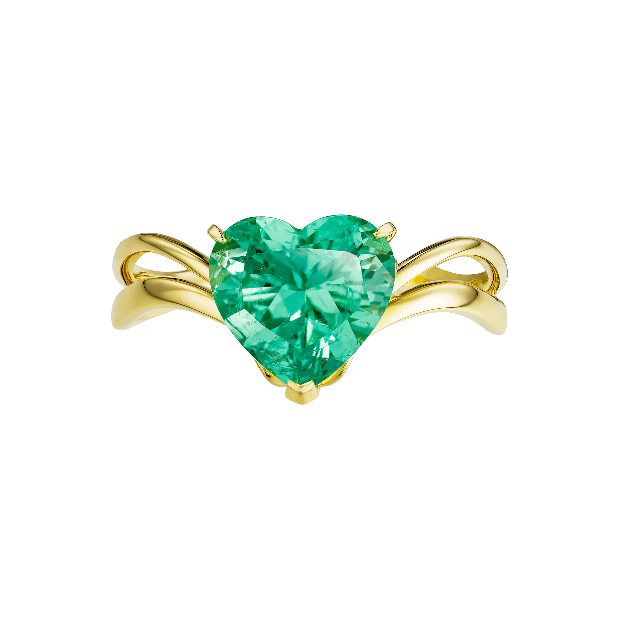 В центре композиции — уральский изумруд весом 2,43 карата, огранённый в форме сердца. Его нежный зелёный оттенок несёт в себе природную силу и ощущение живой связи, которая возникает между двумя людьми, когда доверие становится основой отношений. Драгоценный камень воспринимается как эмоциональное ядро украшения — он хранит смысл близости и внутреннего согласия быть вместе.