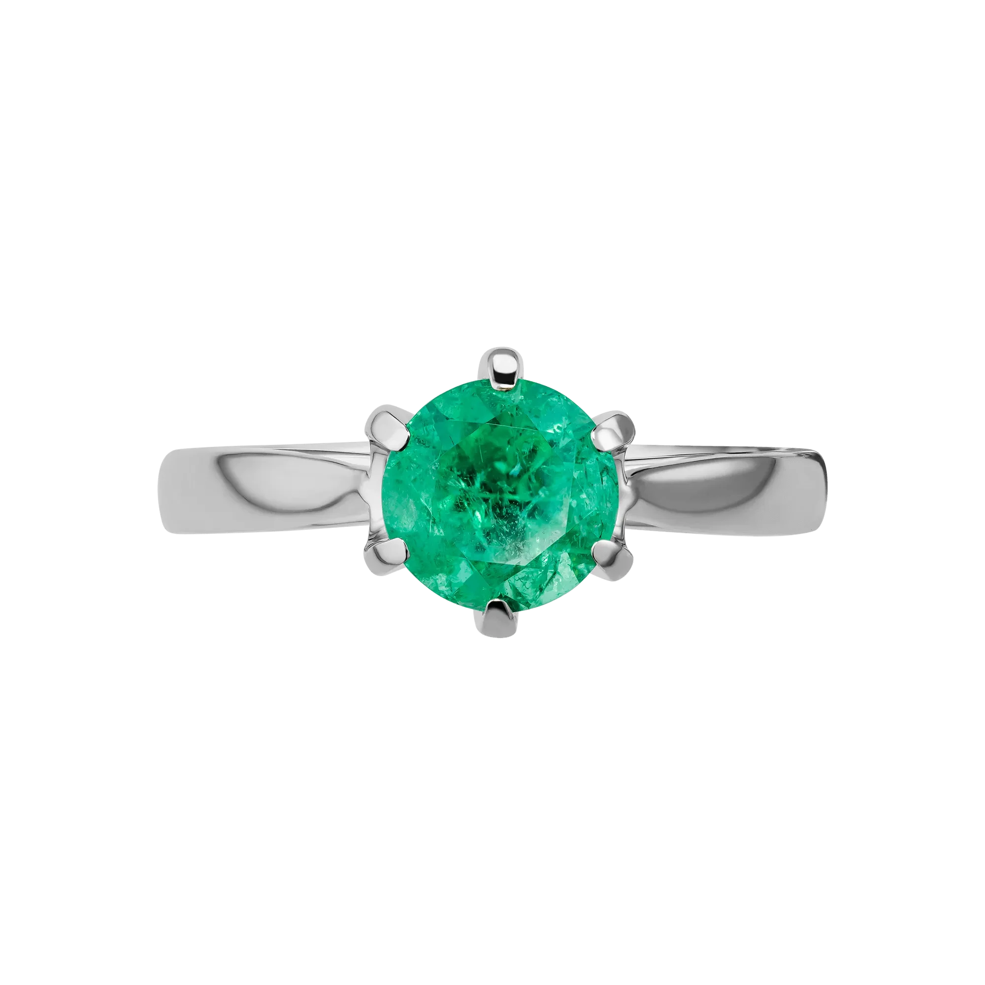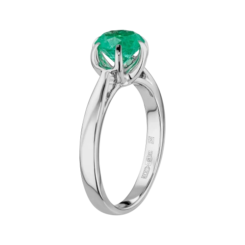 Белое золото оправы подчёркивает благородство самоцвета, сохраняя ощущение лёгкости и изящества. Чистые линии создают архитектуру, где каждый элемент служит одной цели – раскрыть природное совершенство изумруда.