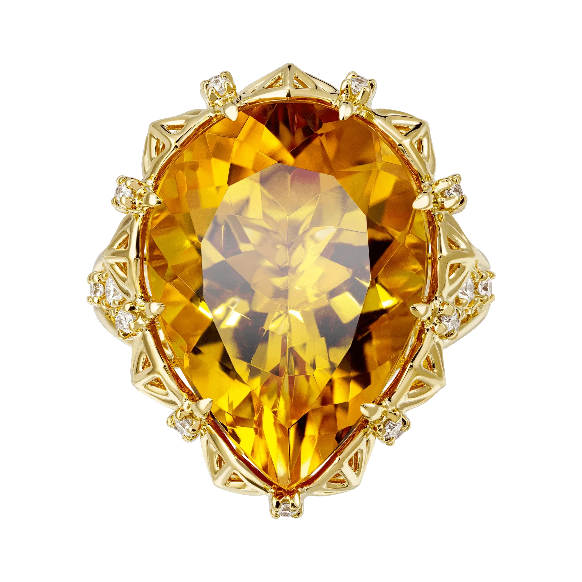 Центр удивительного шедевра ювелирного искусства венчает яркий цитрин, чья красота вызывает приятный трепет, доказывающий, что перед нами истинное природное чудо, виртуозно ограненное ювелирами и готовое дарить владелице эксклюзивного кольца «Сонцето» энергию для новых свершений.