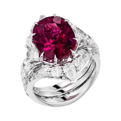 В сердце композиции сияет рубеллит весом 7,55 карат из Нигерии – камень, который ювелирные эксперты называют «драгоценностью с душой». Его насыщенный малиново-рубиновый цвет будто заключает в себе глубину чувств: страсть и нежность, силу и хрупкость, тайну и откровение. Каждый перелив рубеллита словно отражает движение жизни, в которой радости и испытания сливаются в единый поток.