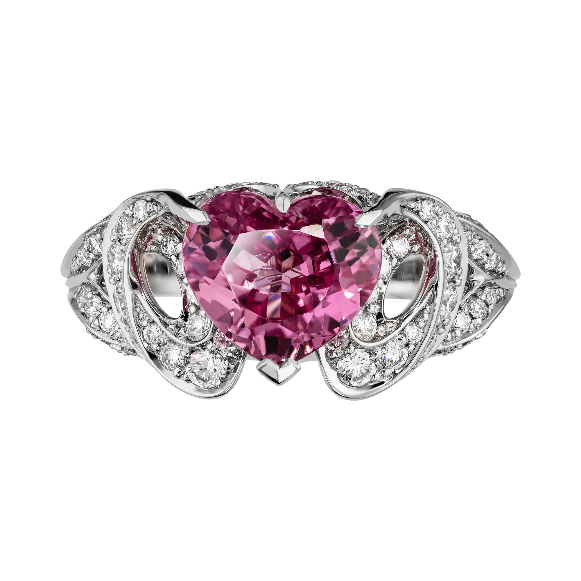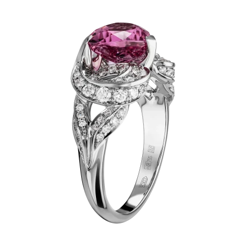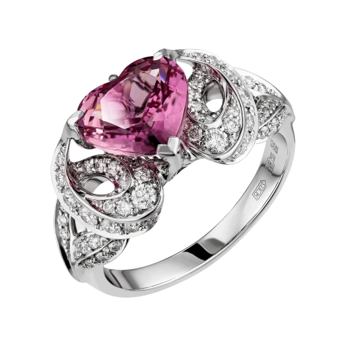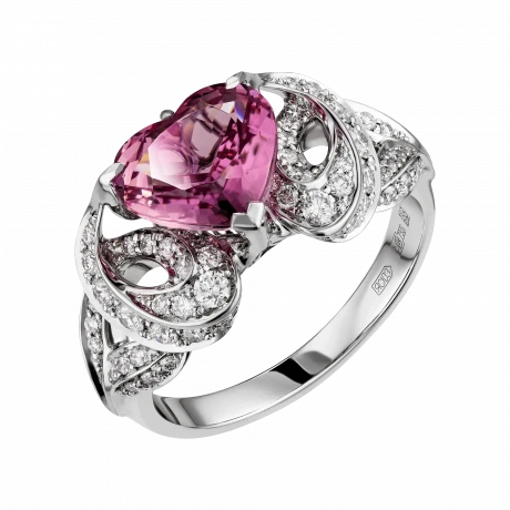 Кольцо «Живопись чувств» – словно миниатюрная картина, в которой не нужен сюжет, чтобы передать самое главное – переживание. В его центре – розовая шпинель в огранке «сердце», благородный камень, чья форма и цвет будто хранят в себе дыхание признания: глубокий, фиолетово-розовый, с переливами эмоций, которые невозможно объяснить словами.
