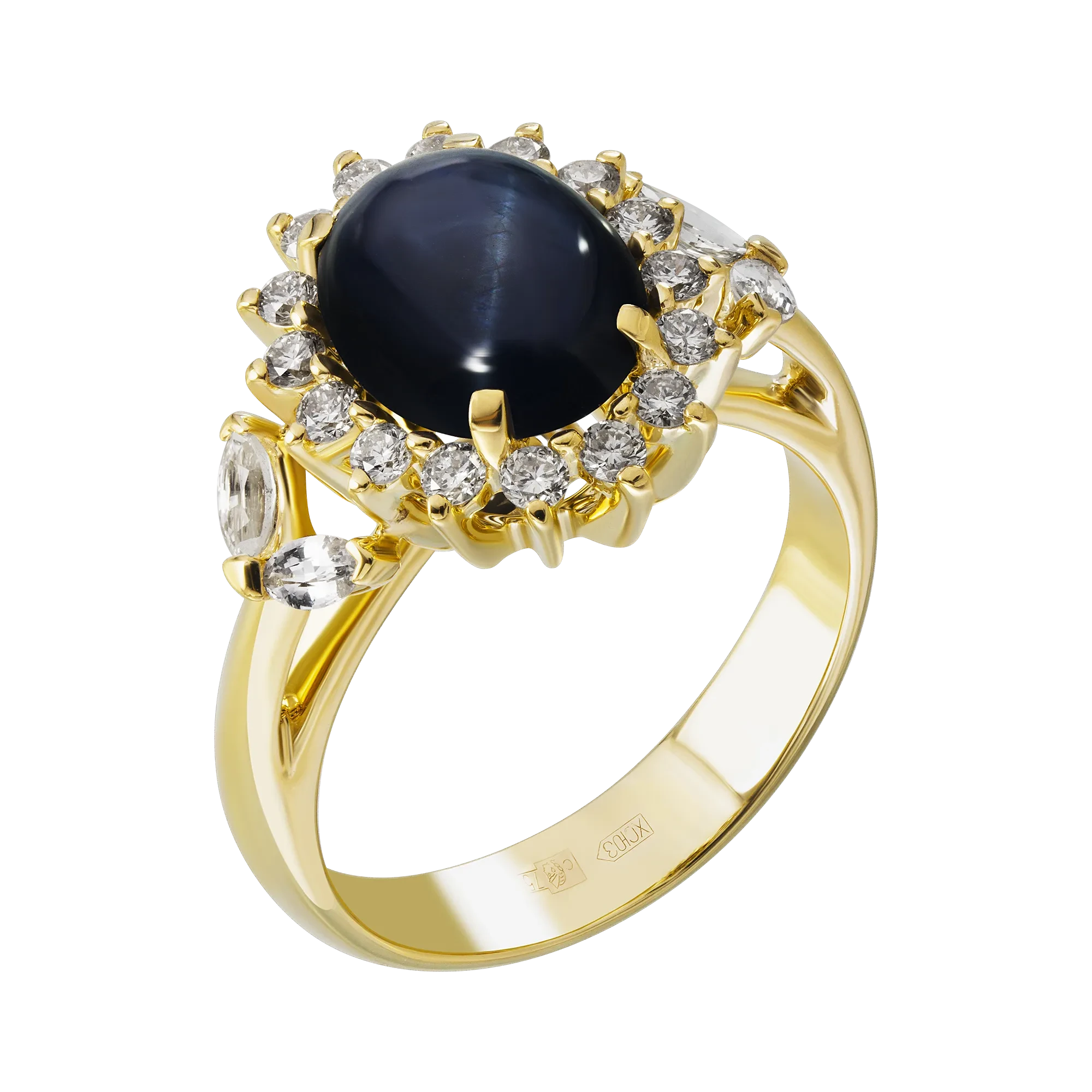 Каждый драгоценный камень в этом удивительном кольце из желтого золота – настоящая звезда, а вместе они образуют звездный состав, поражающий волнующим сочетанием и высокохудожественным контрастом.