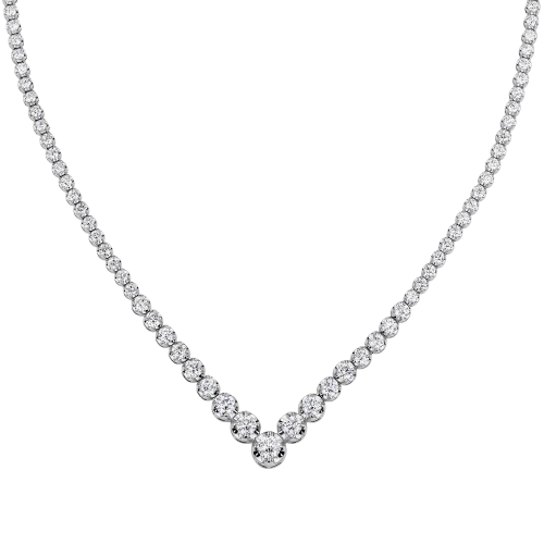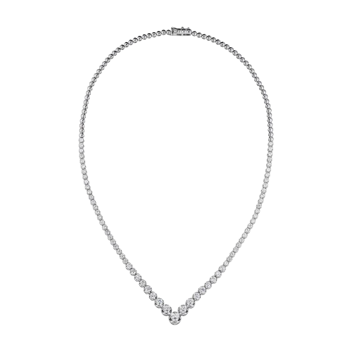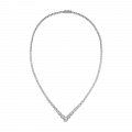 К зоне декольте драгоценные камни постепенно увеличиваются в размере, формируя выразительную кульминацию и подчеркивая смысл названия — свет, который концентрируется и раскрывает свою ценность полностью. Лаконичная оправа из белого золота служит идеальной архитектурой для бриллиантов, не отвлекая внимание и сохраняя чистоту композиции.