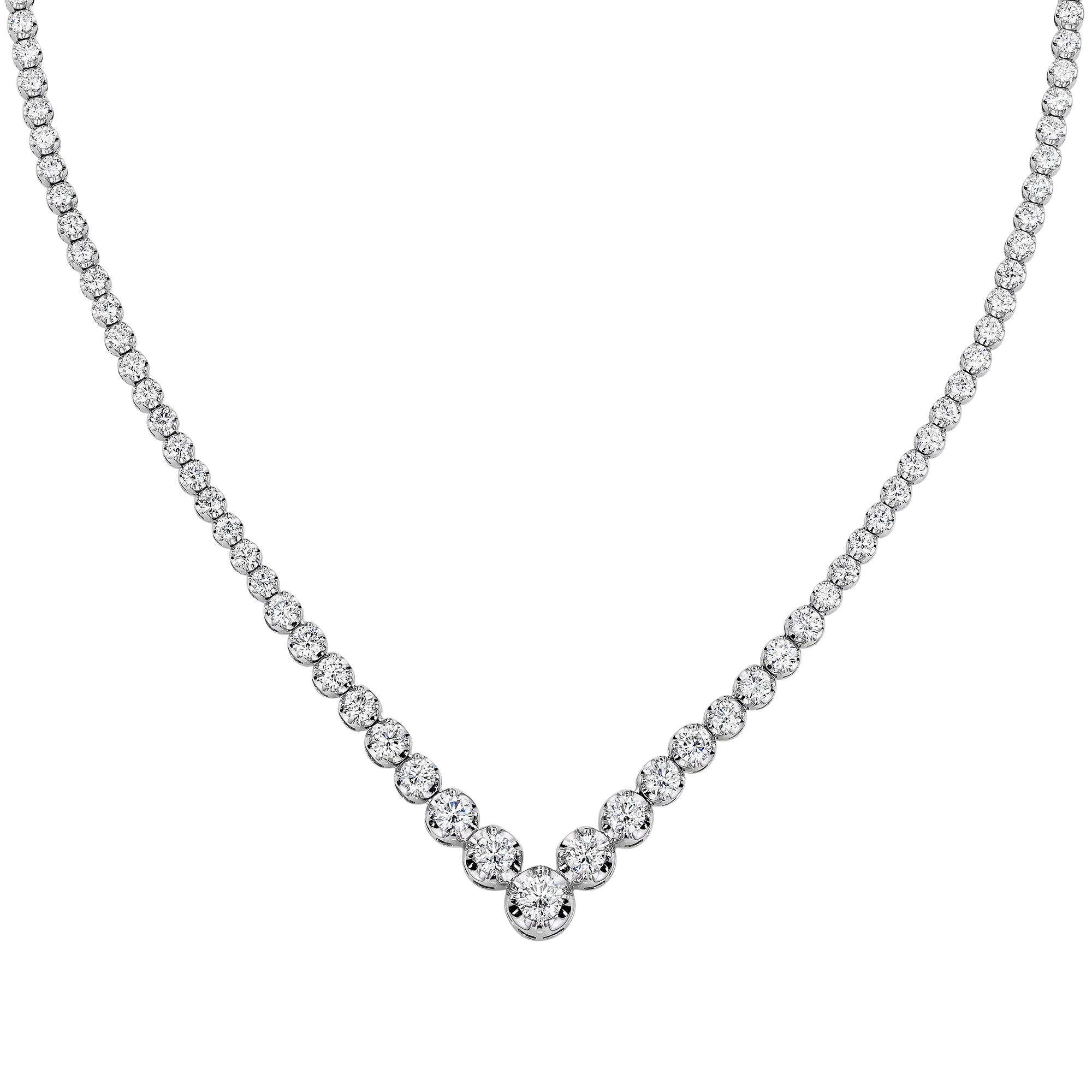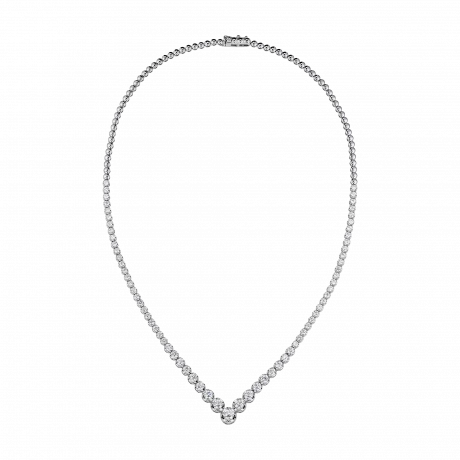 В классическом украшении мастера Maxim Demidov сосредоточились на главном — чистоте и инвестиционной ценности бриллианта. Почти 5,0 карат природных камней высочайшего качества закреплены в отполированные до зеркала золотые чаши, усиливающие свет каждого бриллианта и создающие эффект бесценных капель, собранных в единую линию.