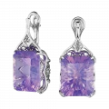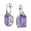 В серьгах «Эфира кружево» лавандовые аметисты обретают форму света и воздуха. Самоцветы общим весом 38,10 карата воспринимаются как полупрозрачные объёмы, в которых оттенок раскрывается мягко и глубинно — от прохладной дымки до насыщенной фиалковой тональности, меняясь при каждом движении и повороте головы.