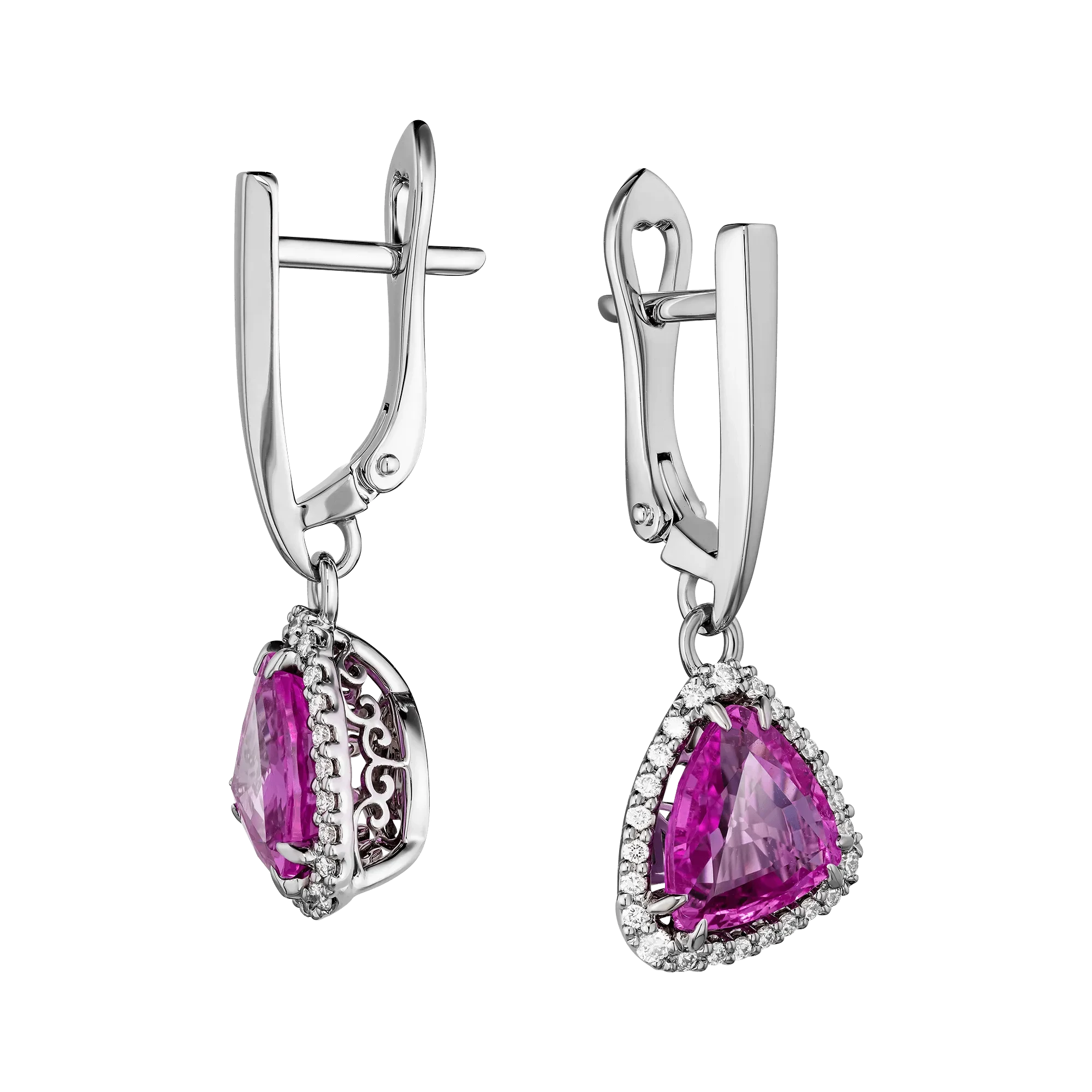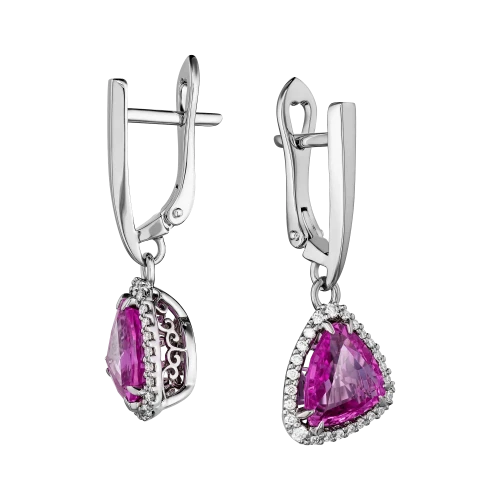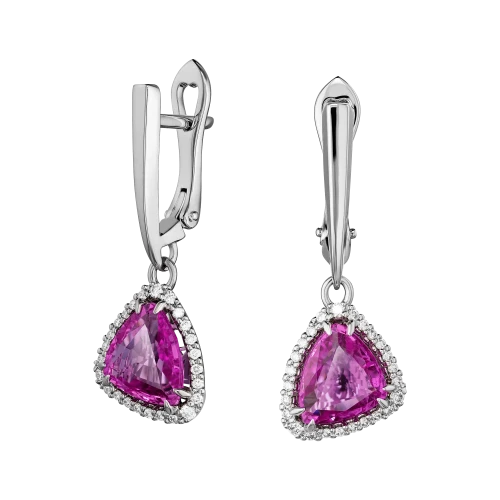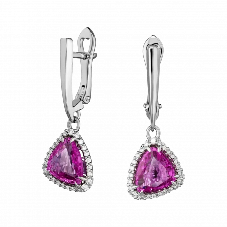 Утонченные серьги не заявляют о себе громко – они будто шепчут и их звучание – тонкое, но узнаваемое. В центре каждой – розовый сапфир из Мадагаскара, драгоценный акцент, который наполняет образ живостью и эмоциональной искренностью.