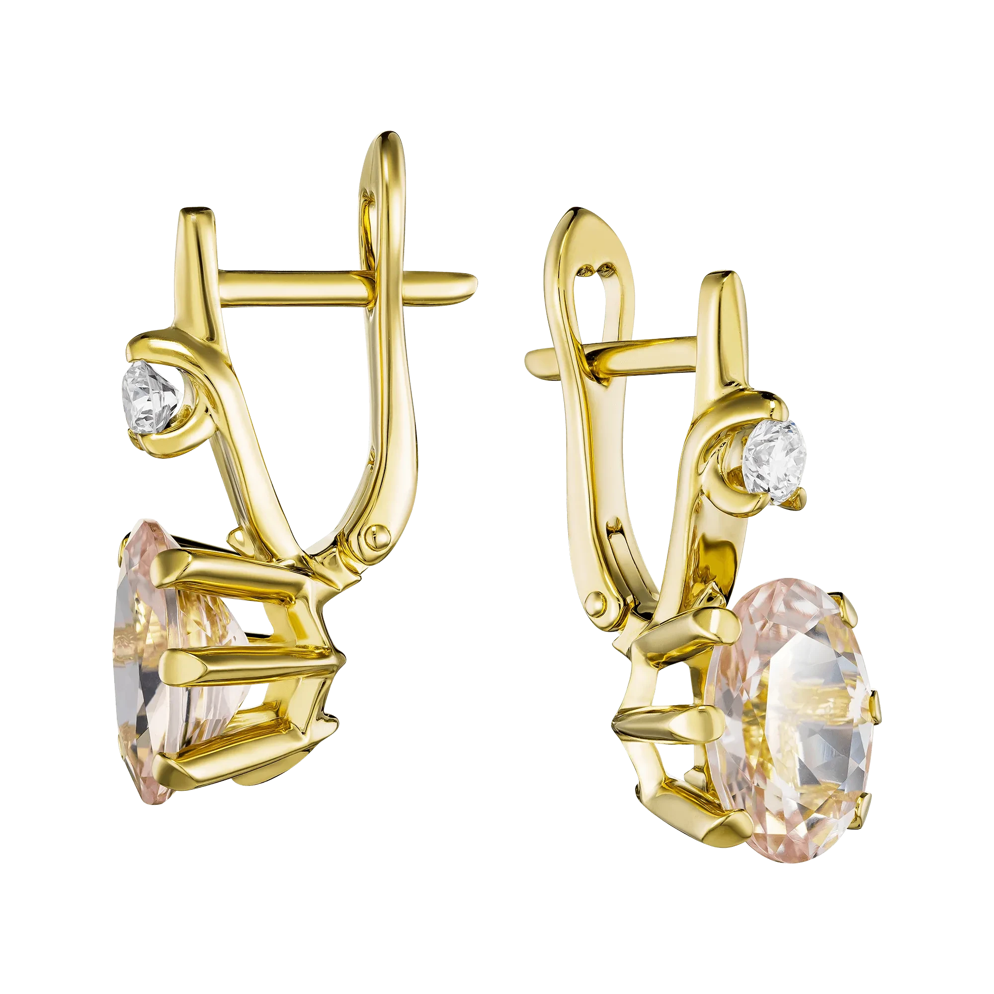 Плавные линии оправы из жёлтого золота обрамляют камни с особой деликатностью, усиливая их теплоту и мягкость. Бриллианты добавляют лучистые акценты, подчёркивая изящество формы и придавая серьгам завершённый, благородный ритм. «Источая нежность» — украшение для женщины, которая ценит тонкость чувств и выбирает красоту как состояние души.