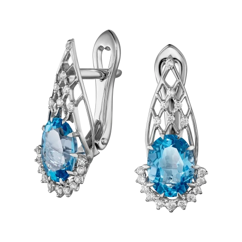 Стильный, очень современный орнамент, очерченный бриллиантовыми вставками, мягко оттеняет яркую голубизну виртуозно ограненных топазов. Все 2,76 карата этих чудес природы поражают насыщенным цветом, разлитым равномерно в глубинах минерала, считающегося своеобразным талисманом, не дающим стареть владелице на протяжении многих десятилетий.
