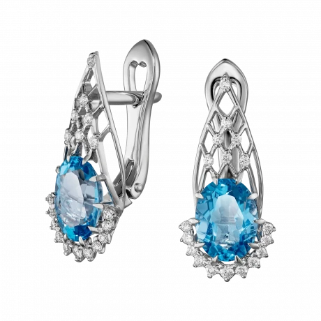 Увиденное в городе Милаццо навсегда остается в памяти – древняя крепость на высоком утесе, о подножие которого плещется всегда лазурное море.Весь этот поэтичный пейзаж, не раз запечатлевавшийся лучшими живописцами, ювелиры очень достоверно воплотили в образе эксклюзивных серег из белого золота.